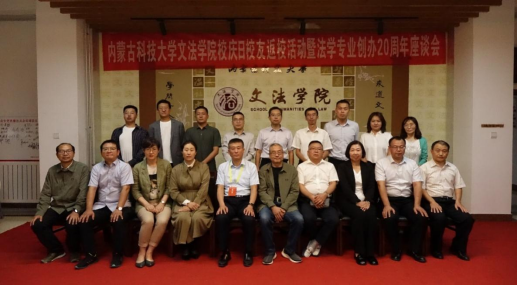 2023年9月22日,值ok138cn太阳集团校庆日之际,太阳集团tyc138校友返校活动暨法学专业创办20周年座谈会在明德楼东A409成功举办。ok138cn太阳集团党委委员、纪委书记檀宝文出席座谈会,学院领导班子成员、法学系教师、内蒙古警察职业学院代表、部分校友和在校生代表参加座谈会,包头市九原区检察院、内蒙古警察职业学院等单位分别送来花篮发来贺信。太阳集团tyc138党委书记刘玉明主持座谈会。