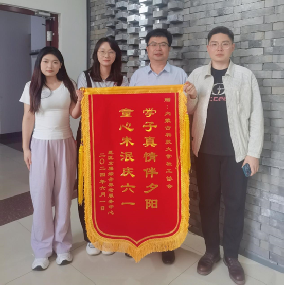 活动结束后,包头市宏福综合养老服务中心将一面写有“学子真情伴夕阳,童心未泯庆六一”的锦旗送给了社工协会。虽然是一面小小的锦旗,却让社工协会成员倍感自豪,激励大家在志愿服务的道路上坚持砥砺前行,为建设和谐美好的社会贡献专业价值和力量!