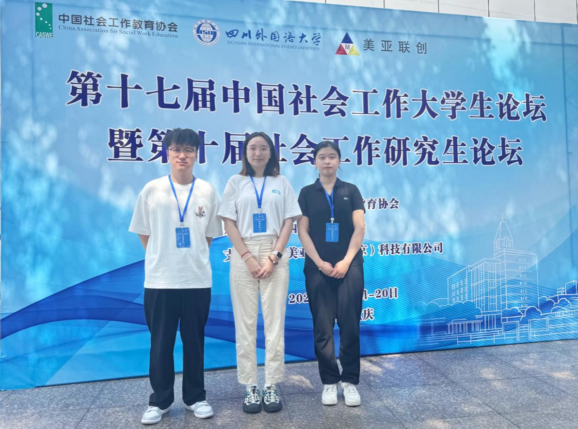 本次论坛吸引了全国835名社会工作专业博士、硕士研究生和本专科学生投搞,经匿名评审,共有443 篇获得参会资格,其中博士18篇,硕士242篇,本科171篇,专科12 篇。我院社会工作硕士研究生袁丽文、郭旭东和本科生李冀湘3名同学的论文入围并受邀参加论坛现场交流。由侯荣庭副教授指导,袁丽文撰写的论文《社会投资还是福利救济?——经济增速换挡期社会治理政策选择偏好研究》和由侯荣庭副教授、张瑞博士指导,李冀湘撰写的论文《政策转译与乡土赋权:民族聚居区社工站参与基层治理的实践困境与理论回应》均荣获本次论坛三等奖。