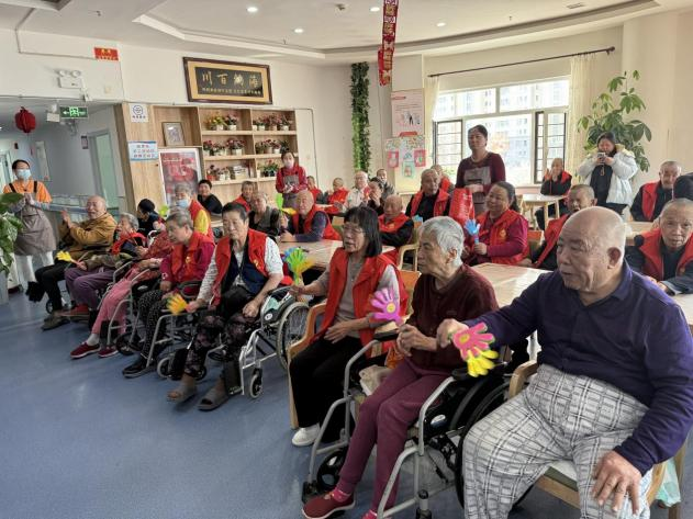 最后我院学生与养老服务中心工作人员、老年朋友们齐聚一堂合影留念。