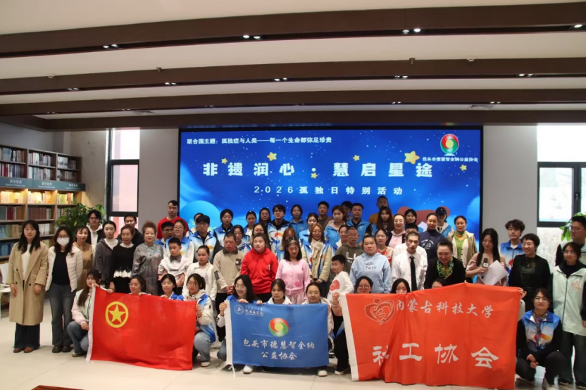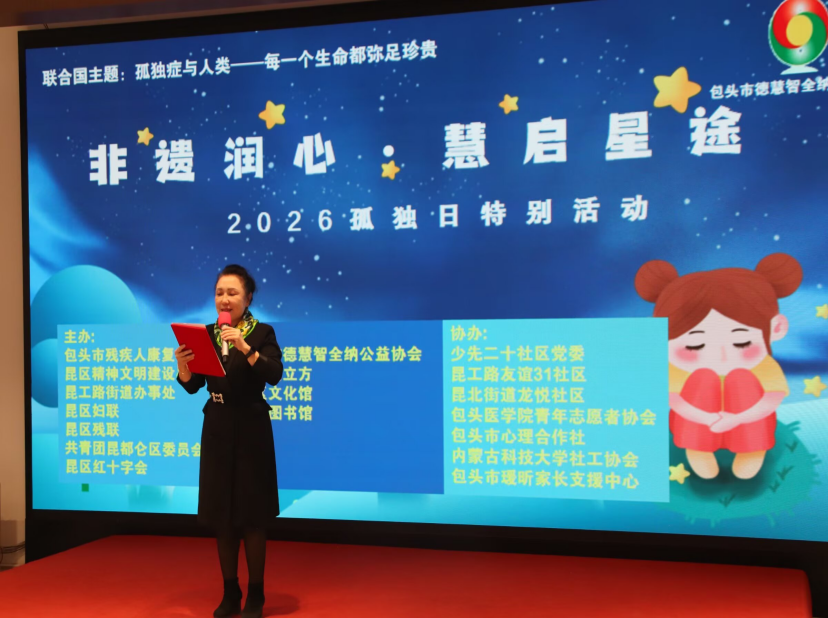 2026年3月28日下午,“非遗润心·融爱伴星”2026年世界孤独症日(4月2日)关爱公益活动在包头鹿城阅立方顺利开展。活动以关爱孤独症群体为核心,通过文艺展演、爱心捐赠等形式,传递社会温暖,包头市残疾人康复中心、昆区精神文明建设办公室、昆区妇联等主办,包头市德慧智全纳公益协会、鹿城阅立方等承办,少先二十社区党委与ok138cn太阳集团社工协会等协办,保障活动有序推进。世界孤独症日的核心意义是让孤独症群体被看见、被尊重、被支持,此次活动旨在强调关爱孤独症群体的社会意义,呼吁各界携手传递爱心。