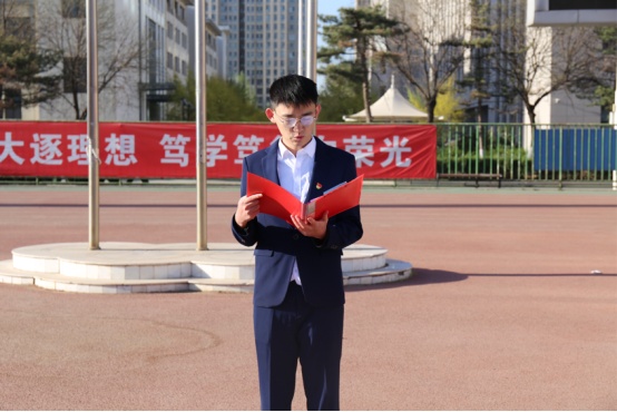 国旗下演讲环节,本科生代表王步民以“与阅读相伴、以书香筑梦”为主题发言。他结合自身阅读与学习感悟,分享了阅读对个人成长的积极作用,号召同学们多读书、读好书,从书籍中汲取养分、坚定理想,用所学知识践行青春使命,以青春力量助力祖国发展。