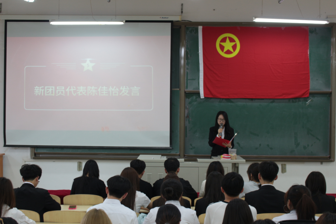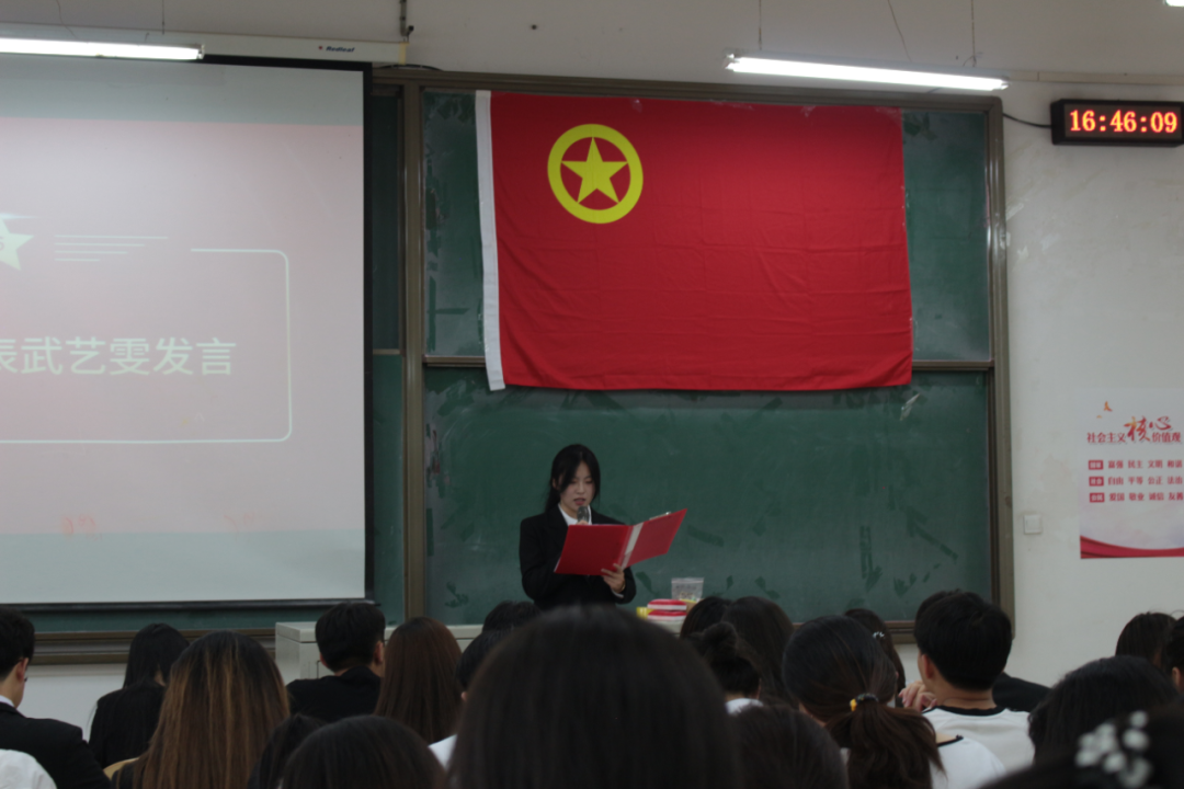 新团员代表陈佳怡同学在发言中分享了自己的成长感悟和对团组织的向往,表达了将以团员标准严格要求自己,努力学习,积极进取,不负团组织的期望,言语间满是对未来的憧憬与担当。优秀团员代表武艺雯同学也分享了自己作为团员的成长经历和感悟,鼓励新团员们珍惜机会,珍惜时光,积极进取,为团组织增光添彩。