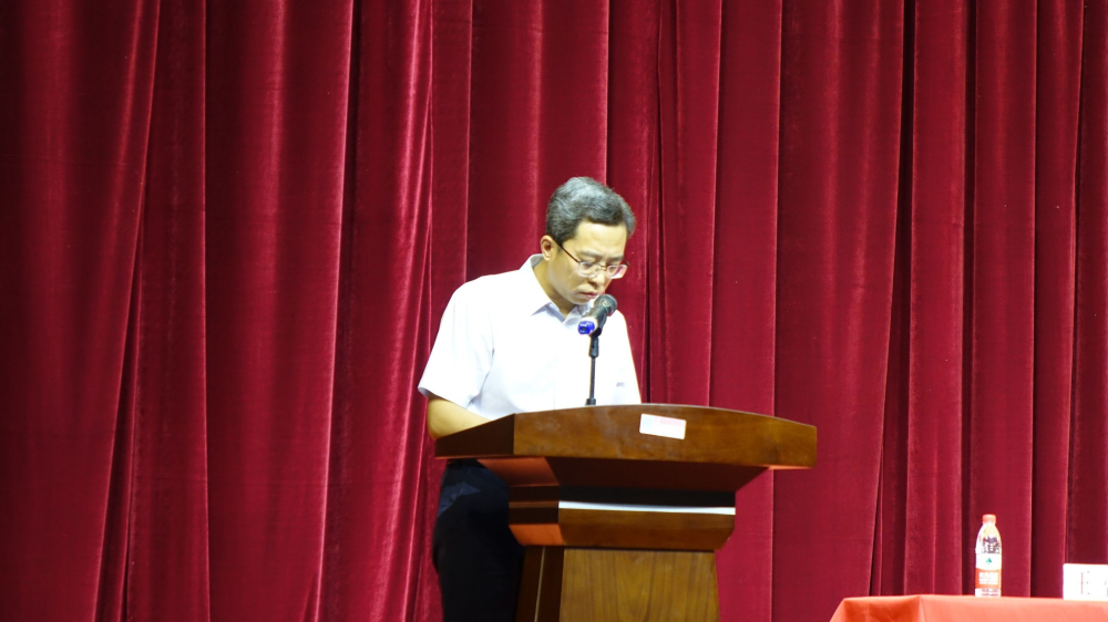 第三项由学生工作办公室主任杜剑锋向新生各班级授予蕴含了学院对专业班级赋予深刻内涵的班旗,希望2023级班级能够继承学院学问古今,求道文法的院训,在我院接续奋斗,再创辉煌。