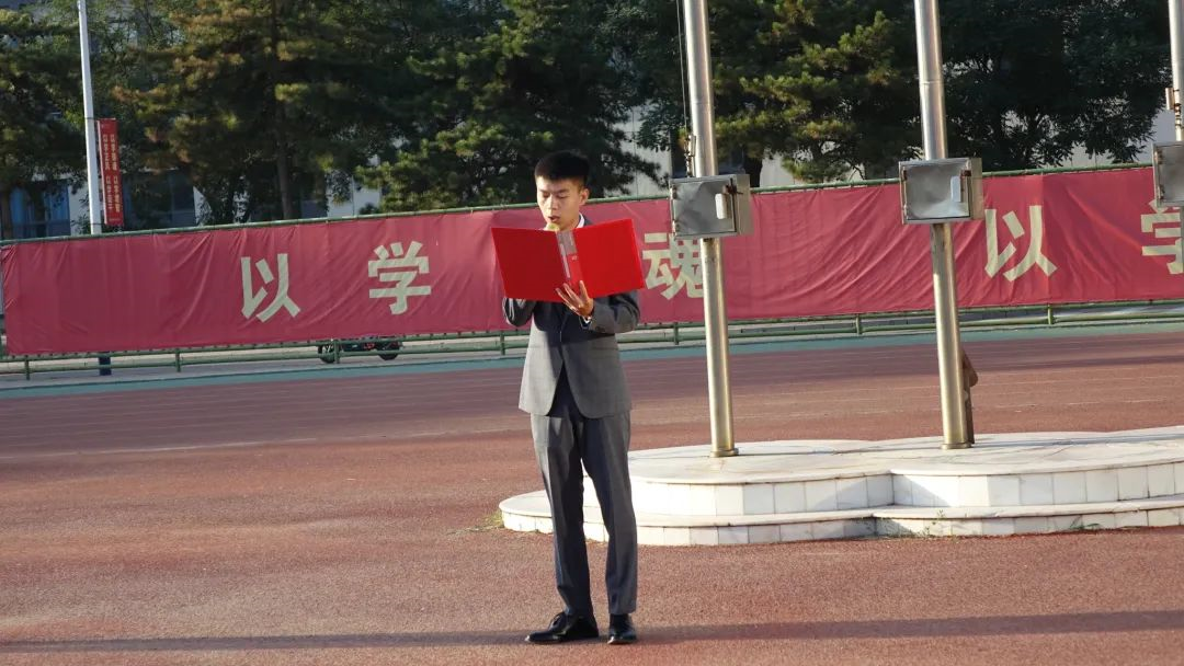 太阳集团tyc1382023级学生王普聪代表全体新生进行国旗下讲话,他慷慨激昂的演讲回荡在校园上空,“胸前的校徽在激励着我们,‘科大人’的称号在鞭策着我们,民族复兴的重担在召唤着我们”,“恰同学少年,风华正茂;书生意气,挥斥方遒”展现出青年一代的爱国热情。