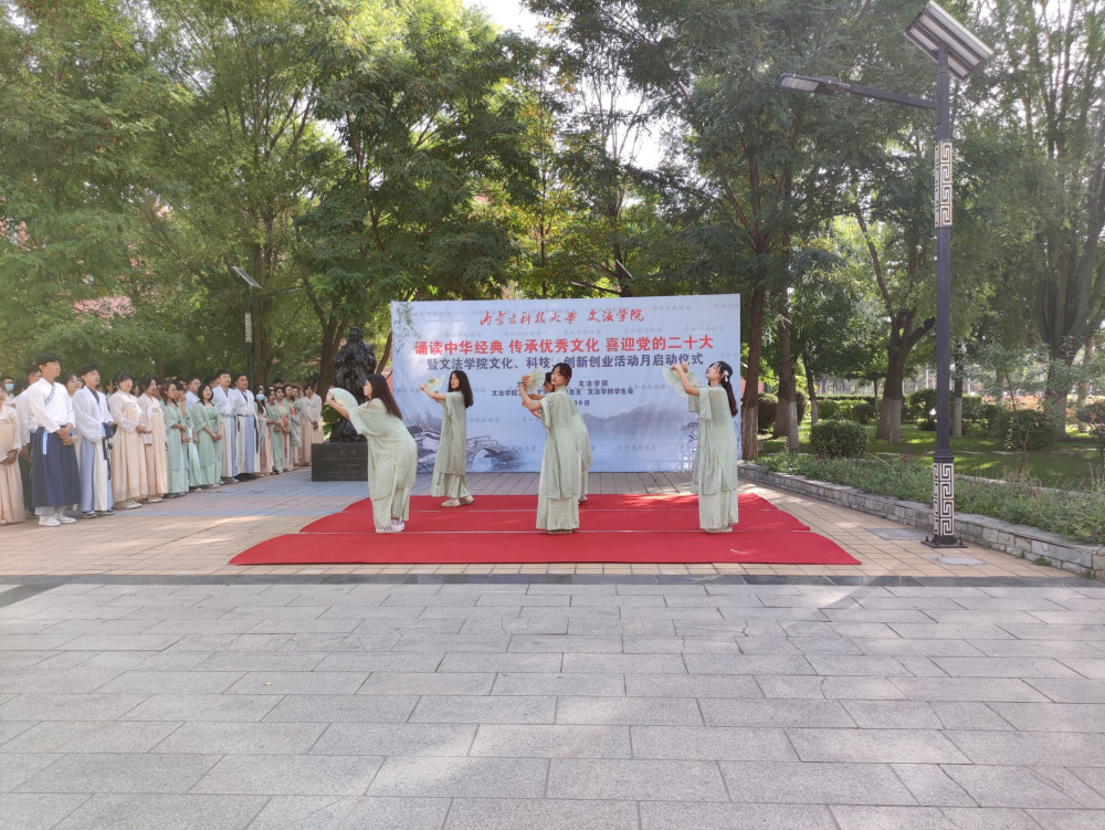 为继承和弘扬中华优秀传统文化,充分彰显文化自信,提升学院学生的国家通用语言文字应用能力和语言文化素养,营造亲近中华经典、热爱中华经典的校园氛围,太阳集团tyc138党委、太阳集团tyc138、学院工会、团总支和学生会联合,于2022年9月30日上午在秋实楼广场校友捐赠的孔子像前举办“诵读中华经典 传承优秀文化 喜迎党的二十大暨文化、科技、创新创业活动月启动仪式。”本次活动总共分为四个篇章:第一篇章:诵读中华经典,传承优秀文化。第二篇章:文化、科技、创新创业活动月启动仪式。第三篇章:我和我的祖国。第四篇章:喜迎党的二十大。