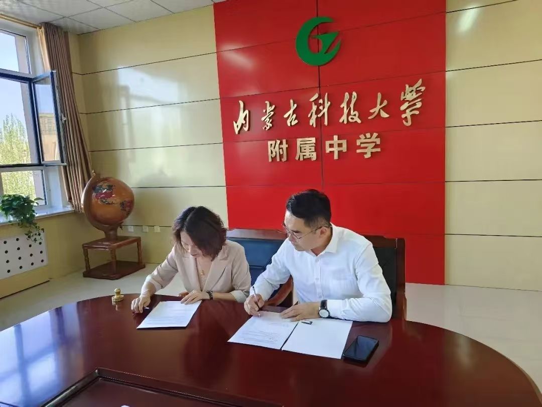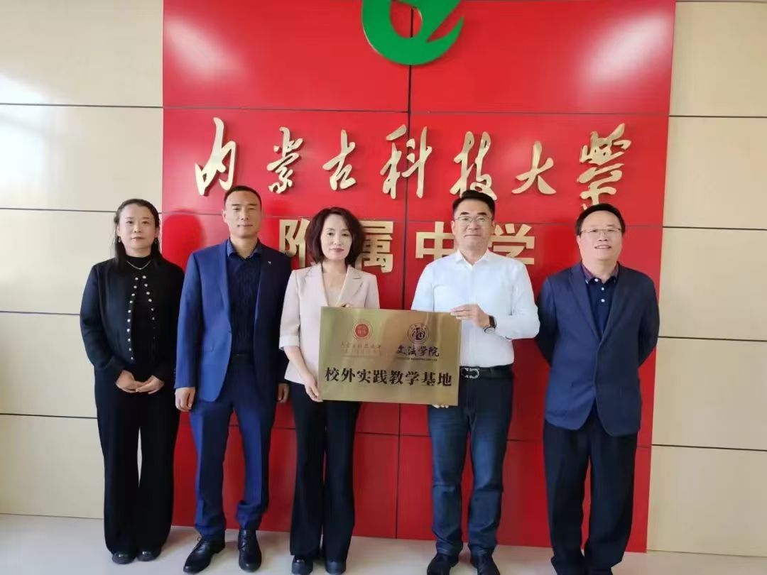 2023年9月27日下午太阳集团tyc138科大附中校外实践教学基地签约授牌仪式在科大附中办公楼四楼会议室举行。文学院副院长王继霞、学科语文教育中心副主任包玉琼、秘书系主任姜磊、科大附中校长石岩、办公室主任高捷出席了本次签约仪式。