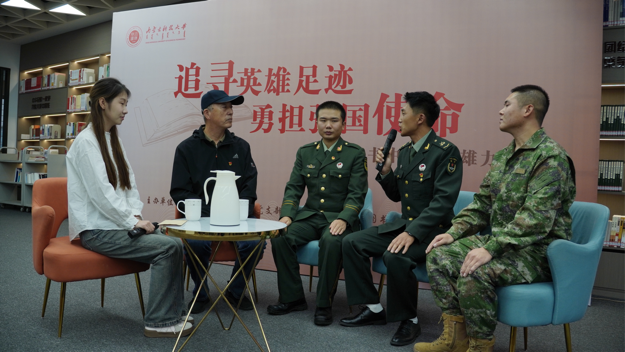 每个年代,都有一个独特的烙印;每名军人,都有一段不寻常的故事。活动中我们也很荣幸邀请到亲历过这场战争的两位老兵同志,聆听他们讲述那段峥嵘岁月,感受那份跨越时空的忠诚与奉献、英勇与坚定。其中亲临现场的“老山作战模范干部”张仕良同志向我们讲述自己和战友们在老山轮战期间艰苦作战的难忘经历,并为大家讲解实地拍下的照片,把大家带入了那段刻骨铭心、异常艰苦的革命岁月。另一位老兵同志无法出席现场,通过镜头向我们讲述了同一战斗中不同地域的经历。青年是祖国的未来,民族的希望,两位老兵同志对现场青年寄予厚望,希望大家不忘历史,不忘初心,积极响应国家的号召,为国家做出贡献,实现自己的理想和人生价值。通过对两位老兵的访谈使在场的每一个人都了解到老一辈革命军人的故事,深刻感受到退伍老兵身上的炙热。活动现场我们也收到了一封由二十年坚守在青藏线上“最可爱的人”寄来的信,这是一份跨越万里的情谊,信中蕴藏了对国家的忠诚和对边防工作的执着,传递了对青年一代的殷切期盼。而后由三位退役大学生分享了自己当兵入伍的动力和军旅生涯的经历,难忘的故事和记忆,陪伴了他们一路走来的收获和成长。谈话中,他们的脸上写满了坚强、勇敢和刚毅。在场的观众都被他们每一个人的精神力量所震撼,引发了在场师生、党员的强烈共鸣和热烈反响,现场掌声不断、泪点频频,激荡着深沉温暖的感动和催人奋进的力量。大家领悟到军人精神的重要性和意义,体悟到自己的责任和使命,应珍惜当下来之不易的和平,将红色精神继承并发扬下去,展现符合时代要求的新青年的担当和作为。