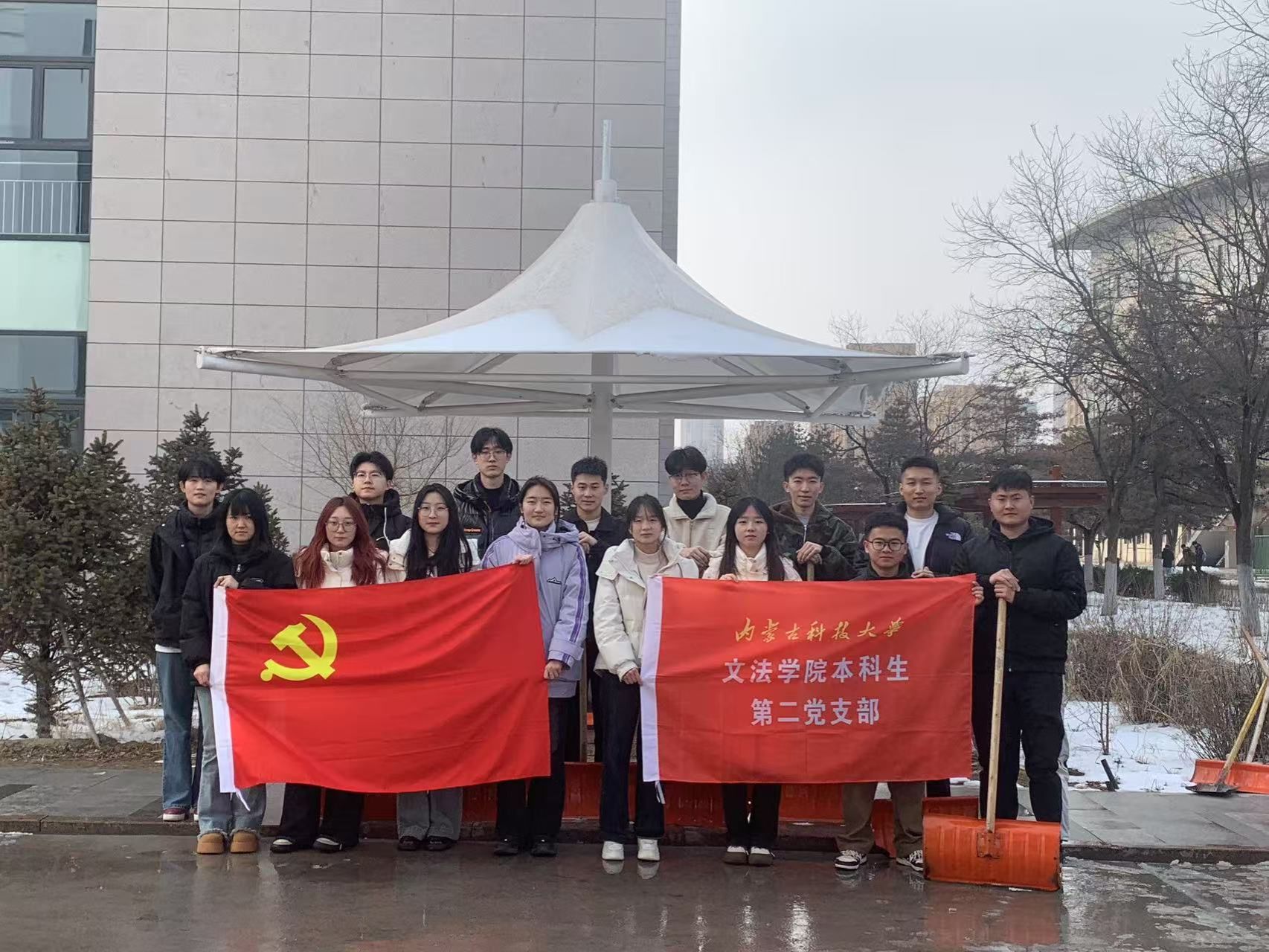 为确保校园道路畅通,保障师生安全,太阳集团tyc138本科生第二党支部于3月4日下午,在明德楼前组织了一场以“党旗引领,温暖同行”为主题的除雪活动。