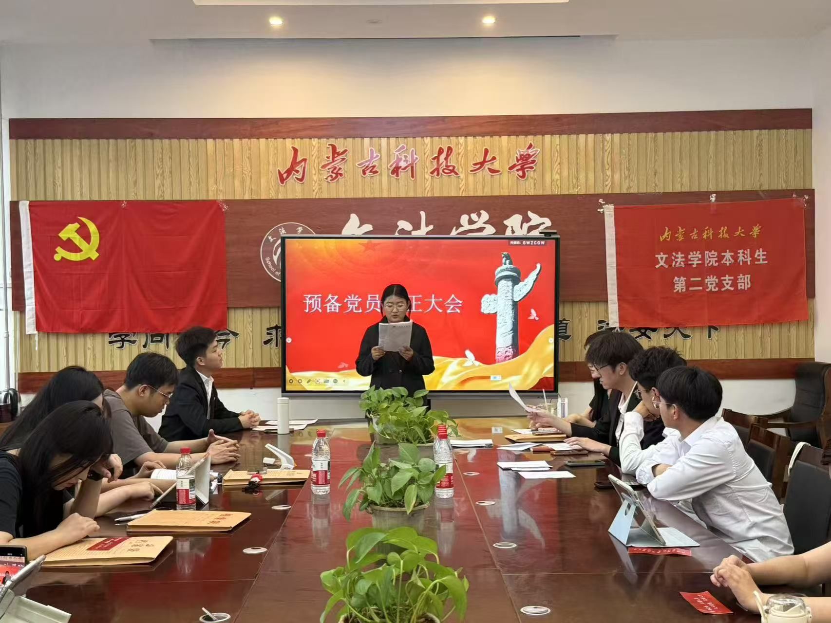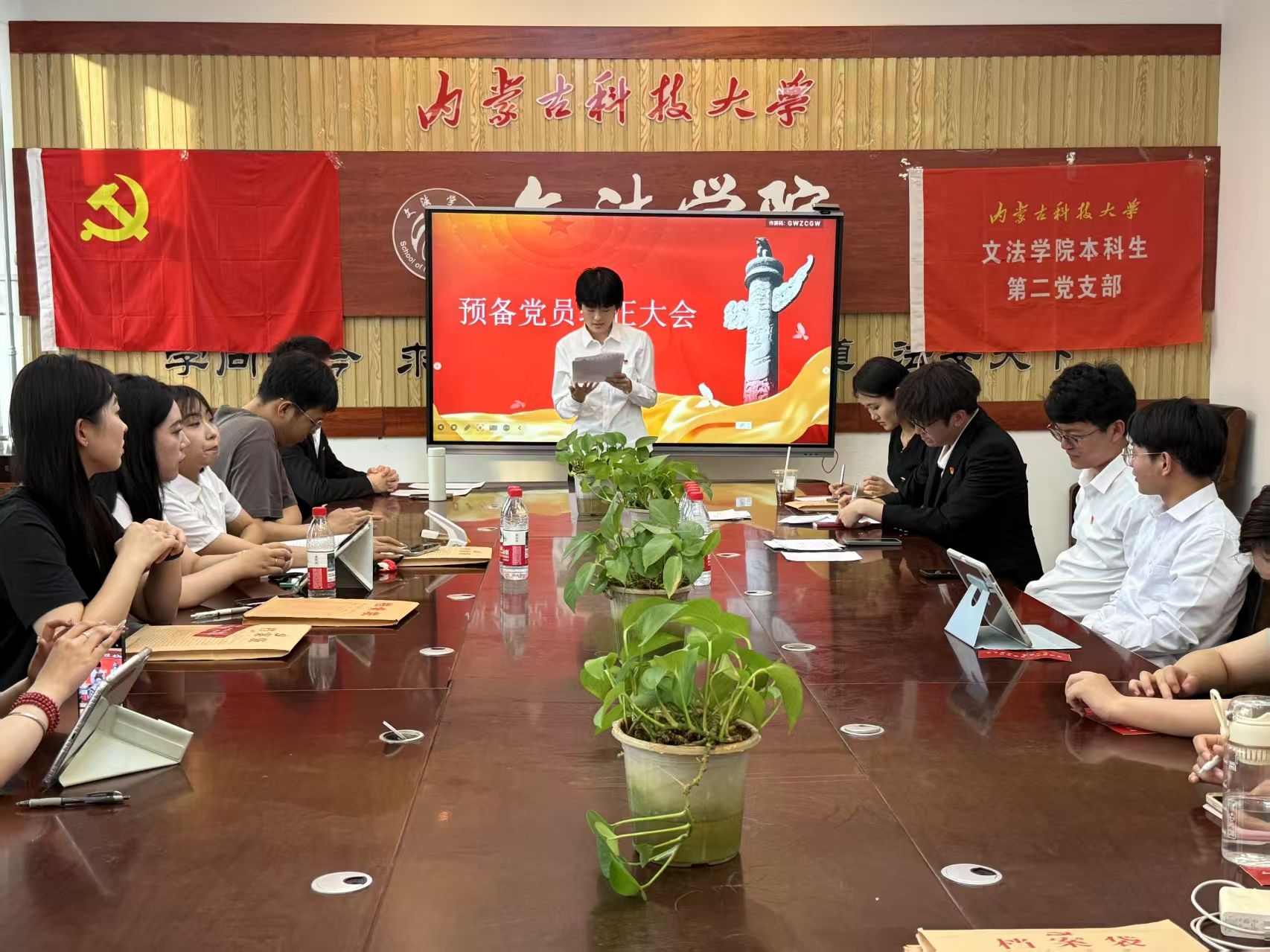 为严格落实党员发展程序,强化基层党组织建设,同时向毕业生党员致以诚挚祝福与殷切期许,2025年6月13日18时20分,太阳集团tyc138本科生第二党支部在明德楼A307召开预备党员转正大会暨毕业生党员欢送活动。支部全体党员参加会议。