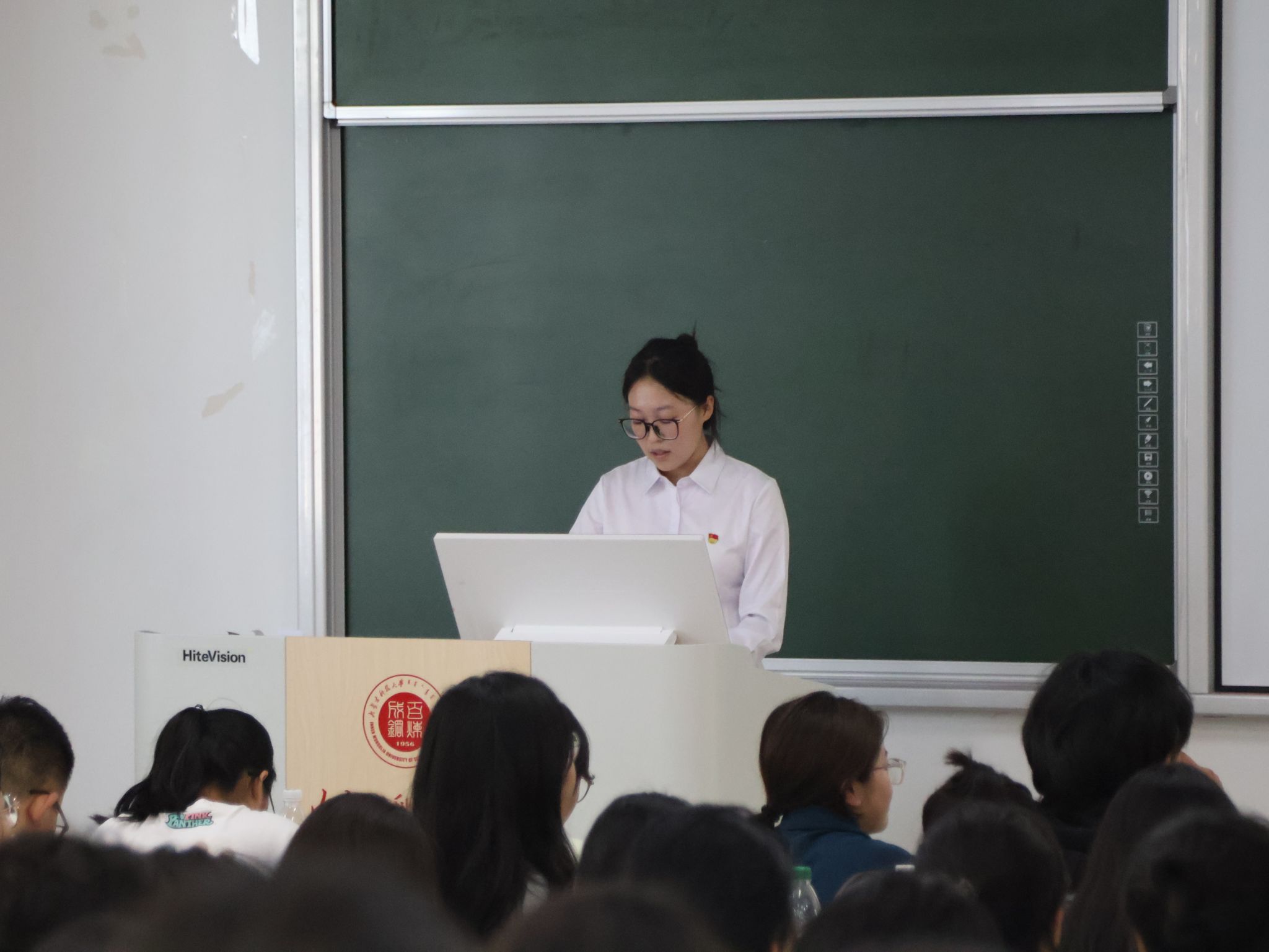 首先,武艺雯同志围绕“正确认识和了解中国共产党”展开。从党的性质、宗旨、奋斗目标等核心维度切入,结合党的发展历程与新时代使命,用通俗的语言和具体案例,帮助新生建立对党的基本认知,明晰党在国家发展与民族复兴中的核心作用。