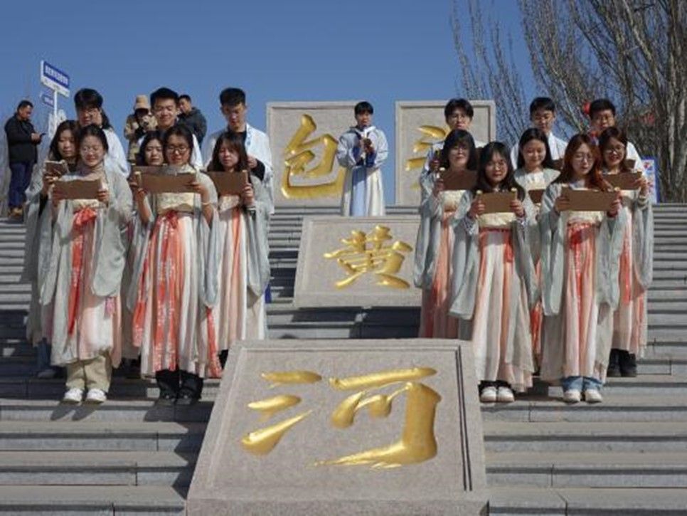 随后,在黄河文化诵读环节,支部成员身着汉服深情朗诵《黄河颂》,用饱含情感的语言表达出对于黄河文化的礼赞。