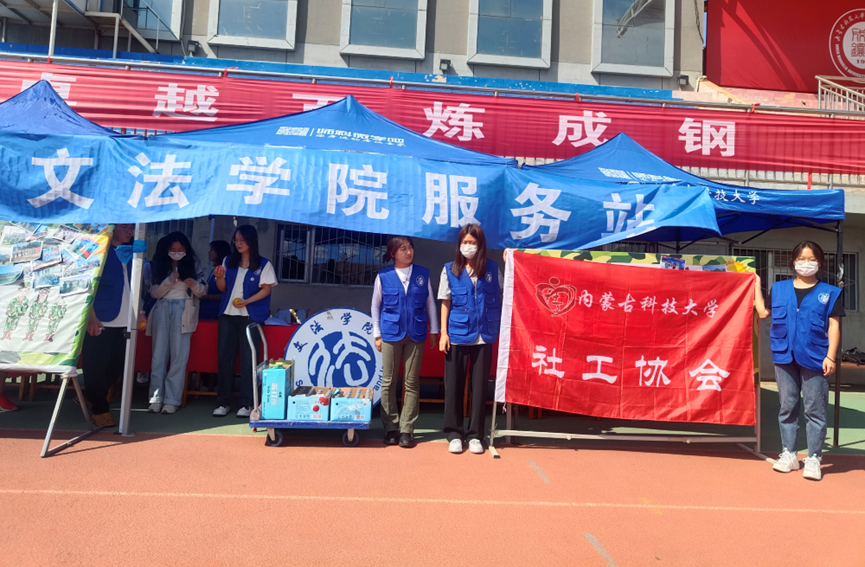 社工协会成员课余时间等候在太阳集团tyc138军训服务站,在休息时间为参加军训的太阳集团tyc138大一新生送水加油。一瓶水、一句问候,表达着社工协会对同学们的浓浓关心。