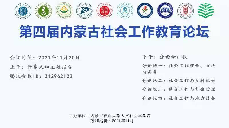 为了推进内蒙古社会工作事业的健康发展,交流社会工作教育教学、科学研究与专业实践经验,提高社会工作专业人才培养质量,发挥社会工作在地方经济社会发展中的积极作用,2021 年11月20日,由内蒙古农业大学人文社会学学院主办的第四届“内蒙古社会工作教育论坛”与大家云端相见,我院社会学系主任闫金山副教授应邀出席,社会工作硕士研究生、社会工作专业本科生代表一并参加了本次论坛。