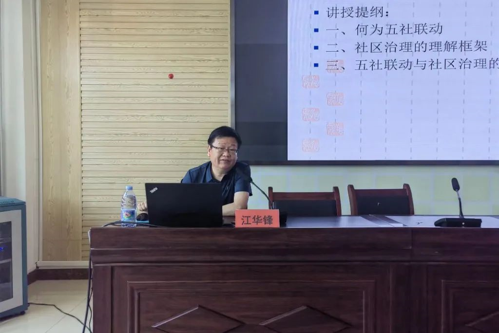 2023年6月7日下午4点20分,“文法讲堂”第111期学术讲座《“五社联动”机制下社区治理探究》在明德楼A411成功举办。此次讲座由中国人民大学社会学博士、北京师范大学博士后、浙江万里学院法学院副院长江华锋教授主讲,太阳集团tyc138副院长王力平教授主持讲座。