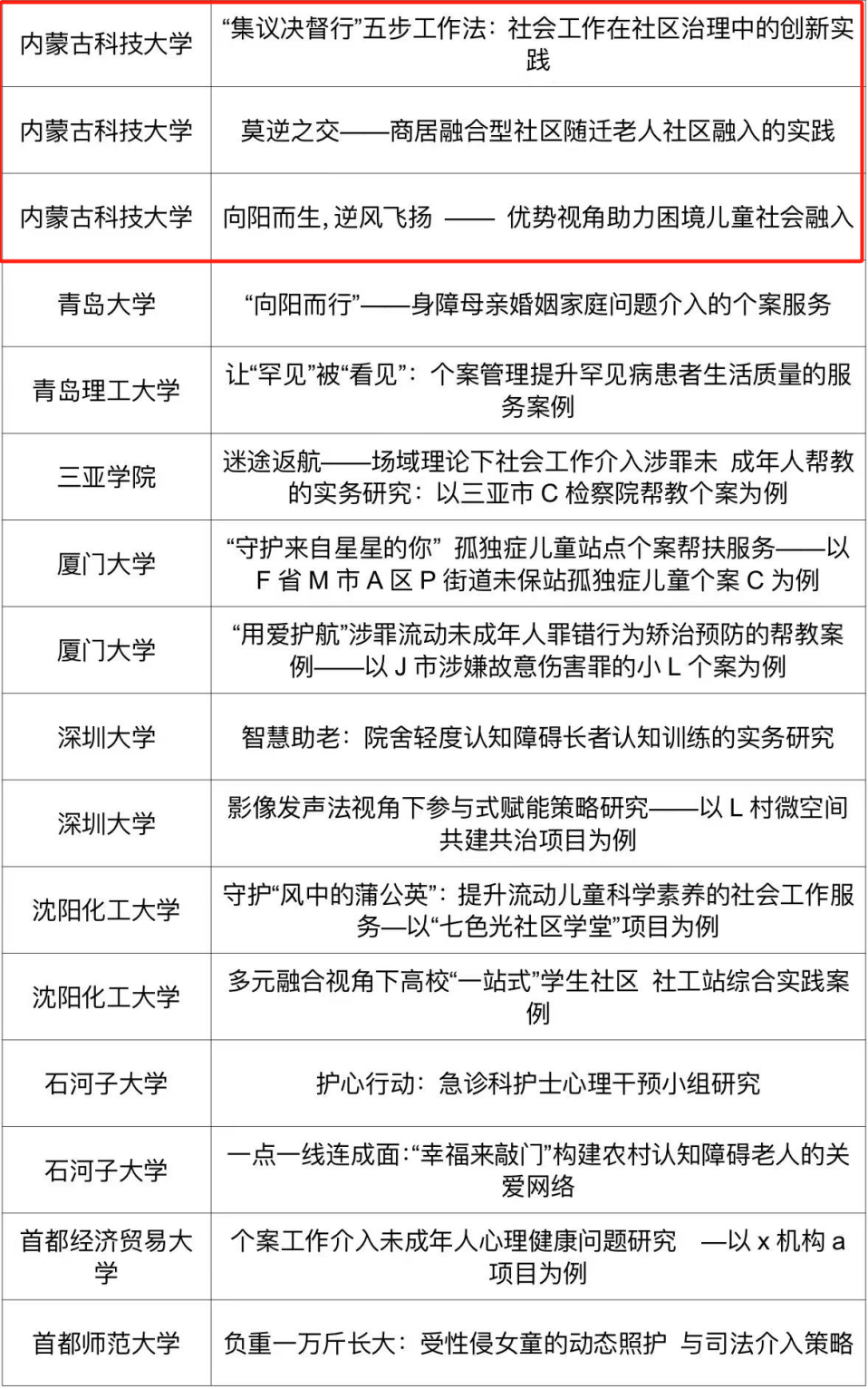 第四届“全国MSW研究生案例大赛”百强案例名单