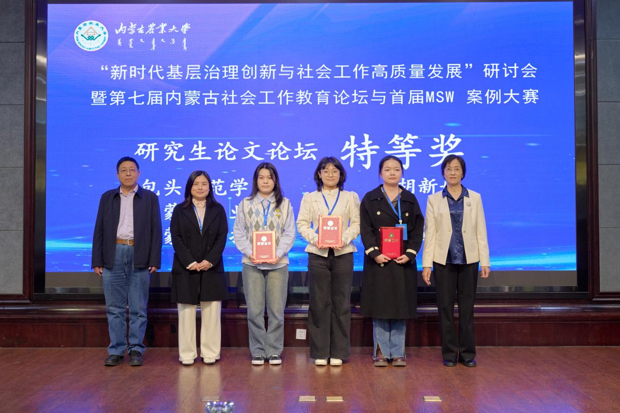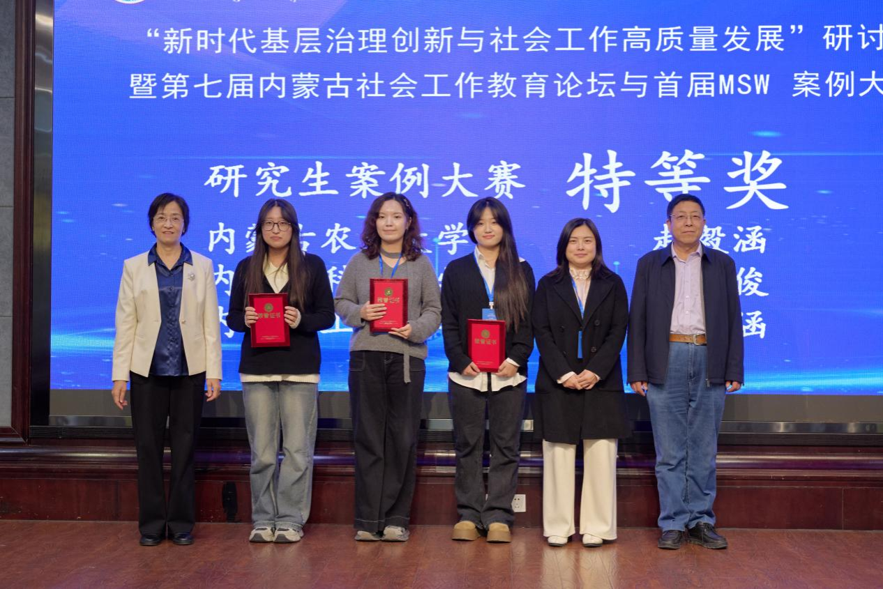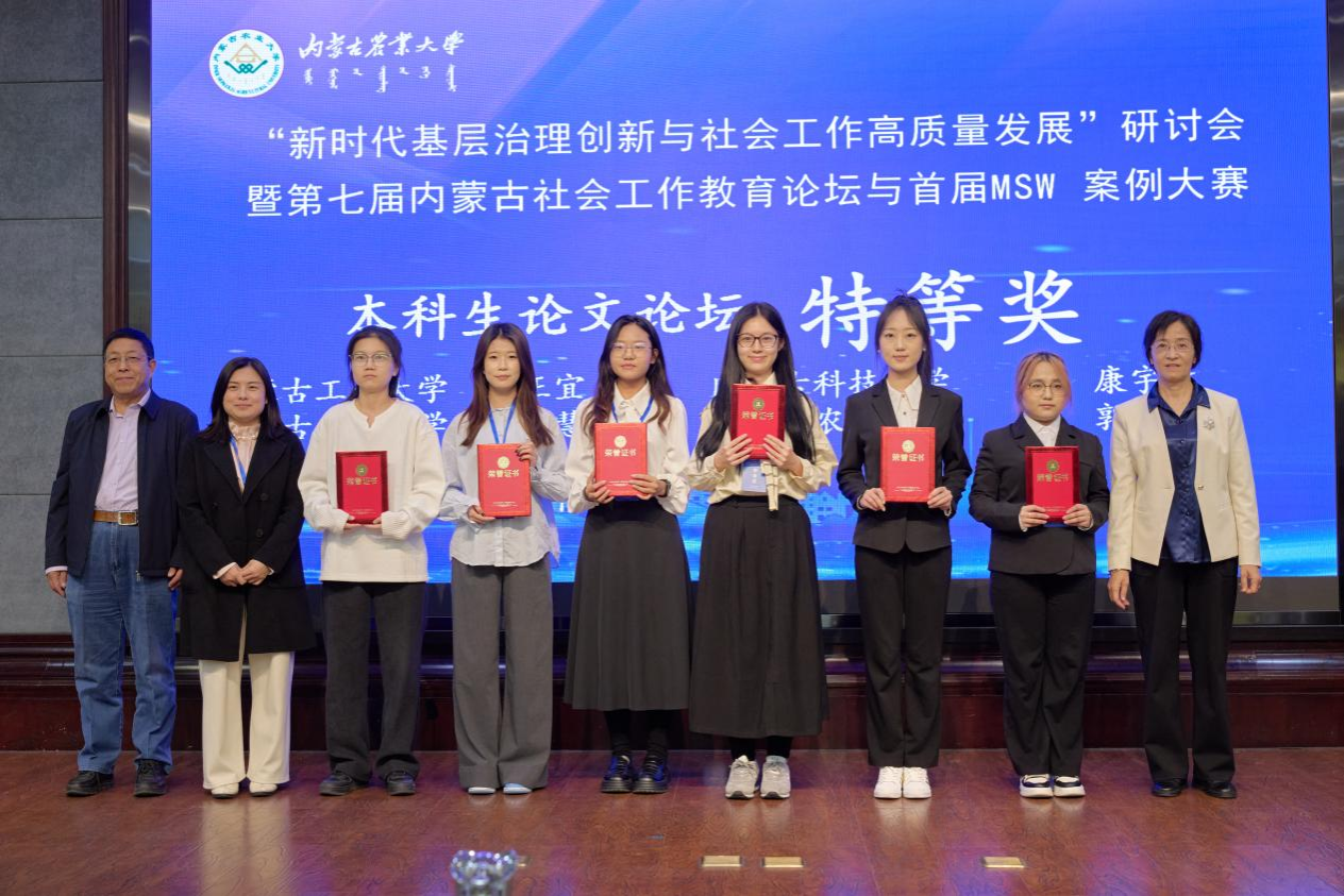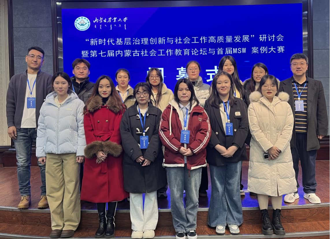 2025年11月21日,由内蒙古社会工作协会、内蒙古社会工作高校联盟主办,内蒙古农业大学人文社会科学学院承办,美亚联创(北京)科技有限公司协办的“新时代基层治理创新与社会工作高质量发展”研讨会暨第七届内蒙古社会工作教育论坛与首届MSW案例大赛在呼和浩特市隆重召开。全区9所设有社会工作专业高校的近百名专家学者和学生齐聚青城。我校太阳集团tyc138社会工作系侯荣庭副教授、张瑞博士、哈那嘎尔博士、程晨博士与12名社会工作专业学生组成代表队应邀参会,师生团队在学术交流与赛事评选中均表现突出,一举夺得10项大奖,包括特等奖3项、一等奖4项、二等奖3项,实现成绩与影响力的双丰收,充分彰显了我校社会工作专业人才的雄厚实力与培养质量。