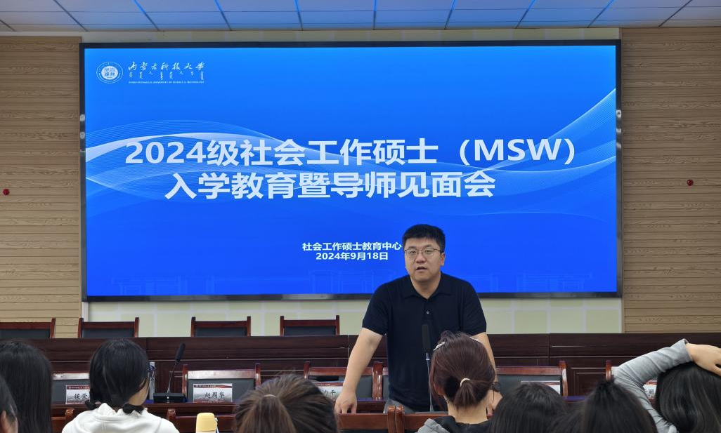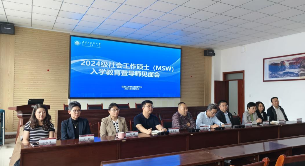 立而暑将尽,秋来见风华。初秋时节校园迎来一张张朝气蓬勃的笑脸,焕发生机。为增进新生对学院及专业的了解,激励学生以饱满的热情和积极向上的精神状态投入到新学期的学习生活中,9月18日下午,ok138cn太阳集团社会工作硕士(MSW)教育中心于明德楼A411会议室举行2024级研究生入学教育暨导师见面会。见面会由社会工作硕士教育中心副主任侯荣庭副教授主持,太阳集团tyc138院长、社会工作硕士(MSW)教育中心主任王力平教授、经济与管理学院院长赵周华教授、社会学系主任闫金山副教授、许晓芸副教授、乌静副教授、孙秀丽副教授、研究生党支部书记王蕾博士、那木拉博士、研究生院王淑清老师以及2024级全体社会工作硕士新生参加了本次见面会。