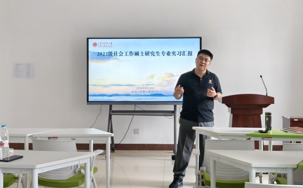 为深入总结2022级社会工作专业硕士的实习实践情况及专业收获,检验实习成果,促进学生分享交流,强化和改进实习工作,2024年9月12日,ok138cn太阳集团社会工作硕士教育中心于明德楼A302举行2022级硕士研究生专业实习汇报会。本次汇报会由社会工作硕士教育中心副主任侯荣庭副教授主持,许晓芸副教授、乌静副教授、孙秀丽副教授、研究生党支部书记王蕾博士、那木拉博士以及2022级全体硕士研究生共同参加。
