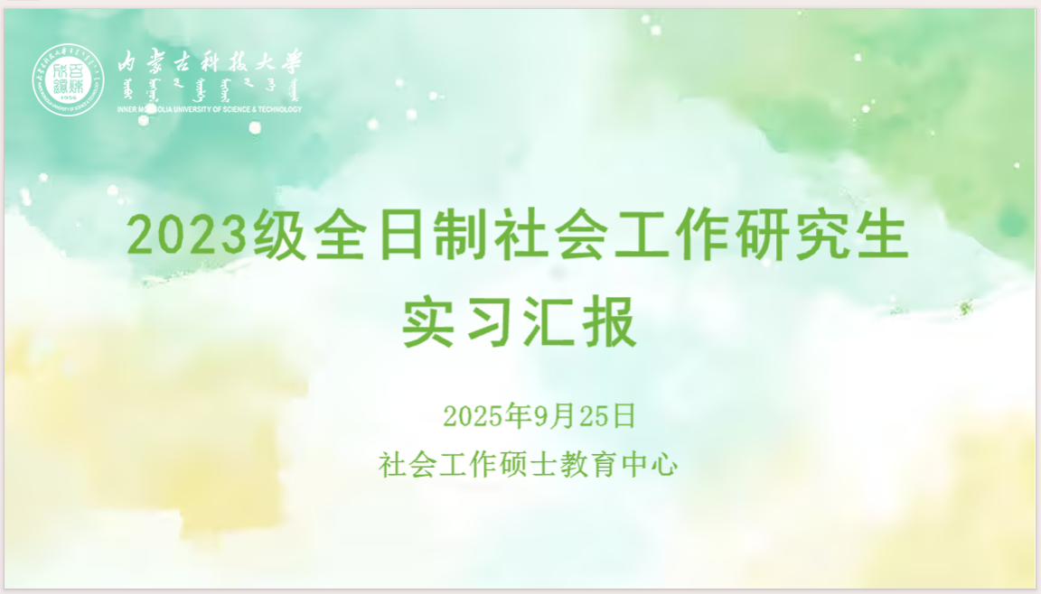为深入总结2023级社会工作硕士研究生的实习实践情况及专业收获,检验实习成果,促进实践知识生产,强化和改进实习工作,2025年9月25日,ok138cn太阳集团社会工作硕士教育中心于明德楼A302、A402举行2023级硕士研究生专业实习汇报会。参加本次汇报会的老师有侯荣庭副教授,王蕾博士、程晨博士、张瑞博士、哈那嘎尔博士、矫冬梅博士以及2023级全体硕士研究生。