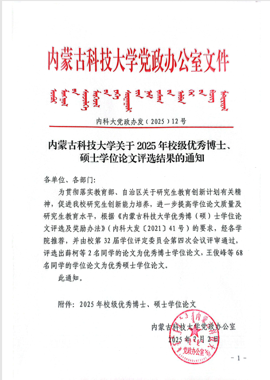 关于公布2022 年度内蒙古自治区优秀博士和硕士学位论文评选结果的通知